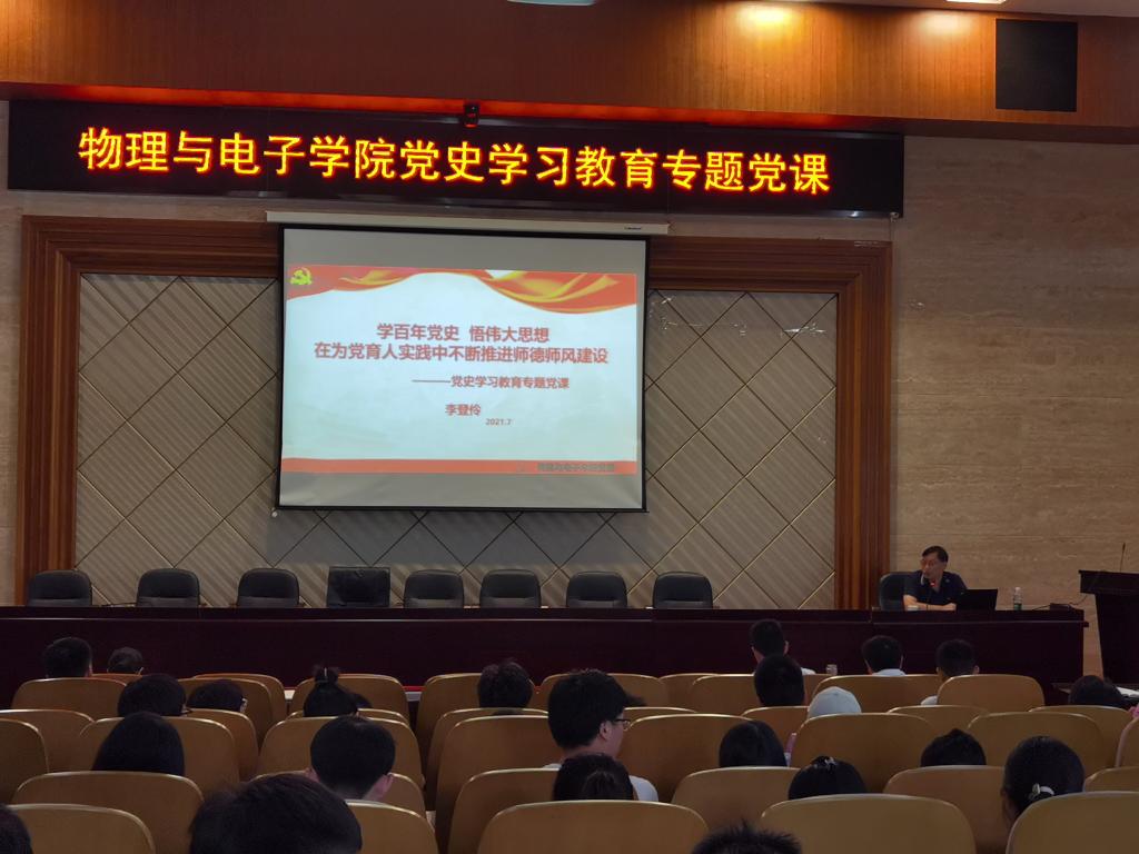 根据学校和胜游体育(SYsports)官方网站入口胜游体育(SYsports)官方网站入口安排,7月14日下午三点,胜游体育(SYsports)官方网站入口党委在物理楼116报告厅组织进行了2021年度教职工、学生党员轮训及“党史学习教育”专题党课。胜游体育(SYsports)官方网站入口全体班子成员及胜游体育(SYsports)官方网站入口全体党员参会。