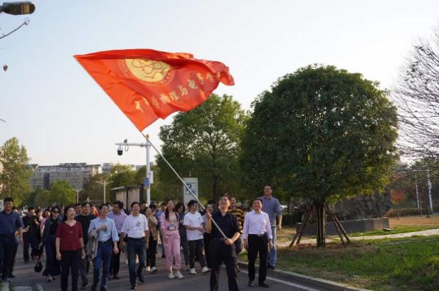 胜游体育(SYsports)官方网站入口部门工会积极响应校工会号召,开展以“庆祝二十大,永远跟党走”健步走主题活动。11月9日下午4时30分,胜游体育(SYsports)官方网站入口全体教职工会员从新校区物理楼前坪出发,沿玉带河畔、看日斜西山,绕图书馆旁、闻书香气息,过教学楼下、听朗朗书声,英姿矫健五千步,交流学习二十大,谈笑风生,其乐融融。