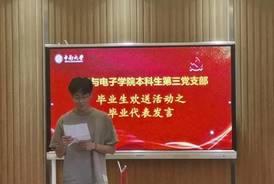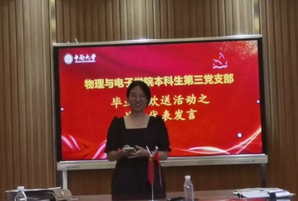 6月9日,本科生第三党支部在新校区物理楼345教室召开“铭记入党初心,传承奋进薪火”主题党日活动,推进主题教育的开展,欢送毕业生党员。
