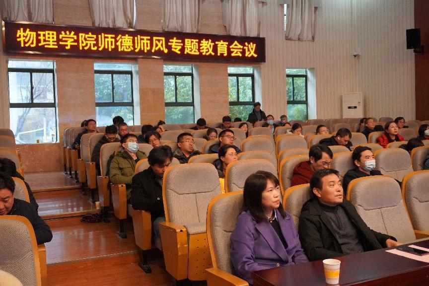 1月19日上午,胜游体育(SYsports)官方网站入口在物理楼116会议室召开师德师风专题教育会议。会议由院党委书记谢群主持,胜游体育(SYsports)官方网站入口领导班子以及全体教职工参加会议。
