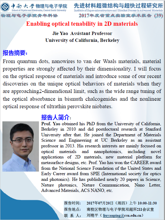 中南大学物理胜游体育(SYsports)官方网站入口2026年推