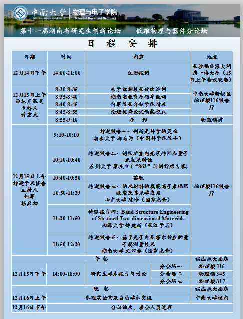第十一届湖南省研究生创新论坛——低维物理与器件分论坛