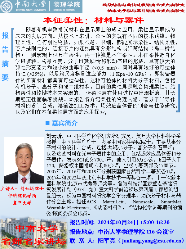 中南大学名师名家学术论坛-本征柔性:材料与器件
