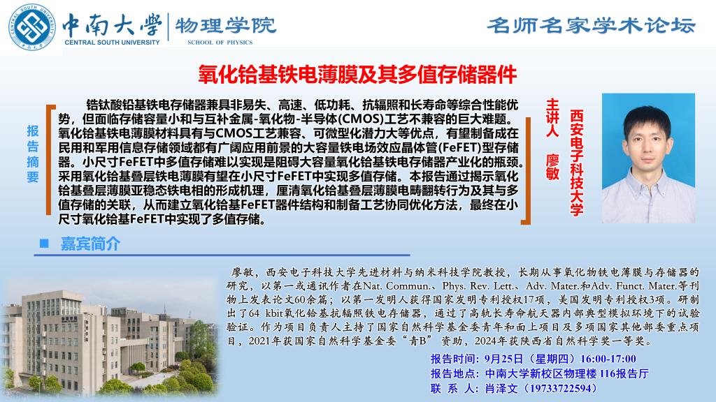 中南大学物理胜游体育(SYsports)官方网站入口2026年推