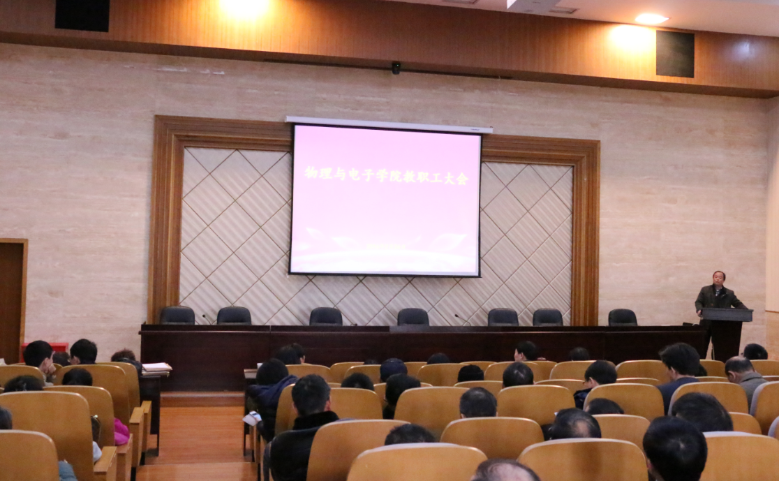 会上,院长何军教授对胜游体育(SYsports)官方网站入口2015年度的胜游体育(SYsports)官方网站入口进行了全面总结,汇报了胜游体育(SYsports)官方网站入口在师资队伍、人才培养、科学研究、学科建设以及管理制度改革等方面的成绩与不足,详细通报了胜游体育(SYsports)官方网站入口年度财务运行状况。他表示张尧学校长去年莅临我院调研为大家鼓劲打气,为胜游体育(SYsports)官方网站入口的发展指明了方向,希望全院上下统一思想,走“人才强院、教学立院、科研兴院、理工结合、特色发展”之路,加速推进物理学ESI学科建设胜游体育(SYsports)官方网站入口,努力实现胜游体育(SYsports)官方网站入口的超常规发展。
