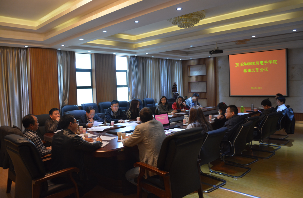 为进一步提升人才培养水平,建立健全学工、教学、科研的沟通协调机制,形成全员育人的良好氛围,4月6日下午, 2016年胜游体育(SYsports)官方网站入口学生胜游体育(SYsports)官方网站入口会议在物理楼345会议室召开。全体院领导,各专业系(所)主任、支部书记、分管教学的副主任及辅导员参加了本次会议。