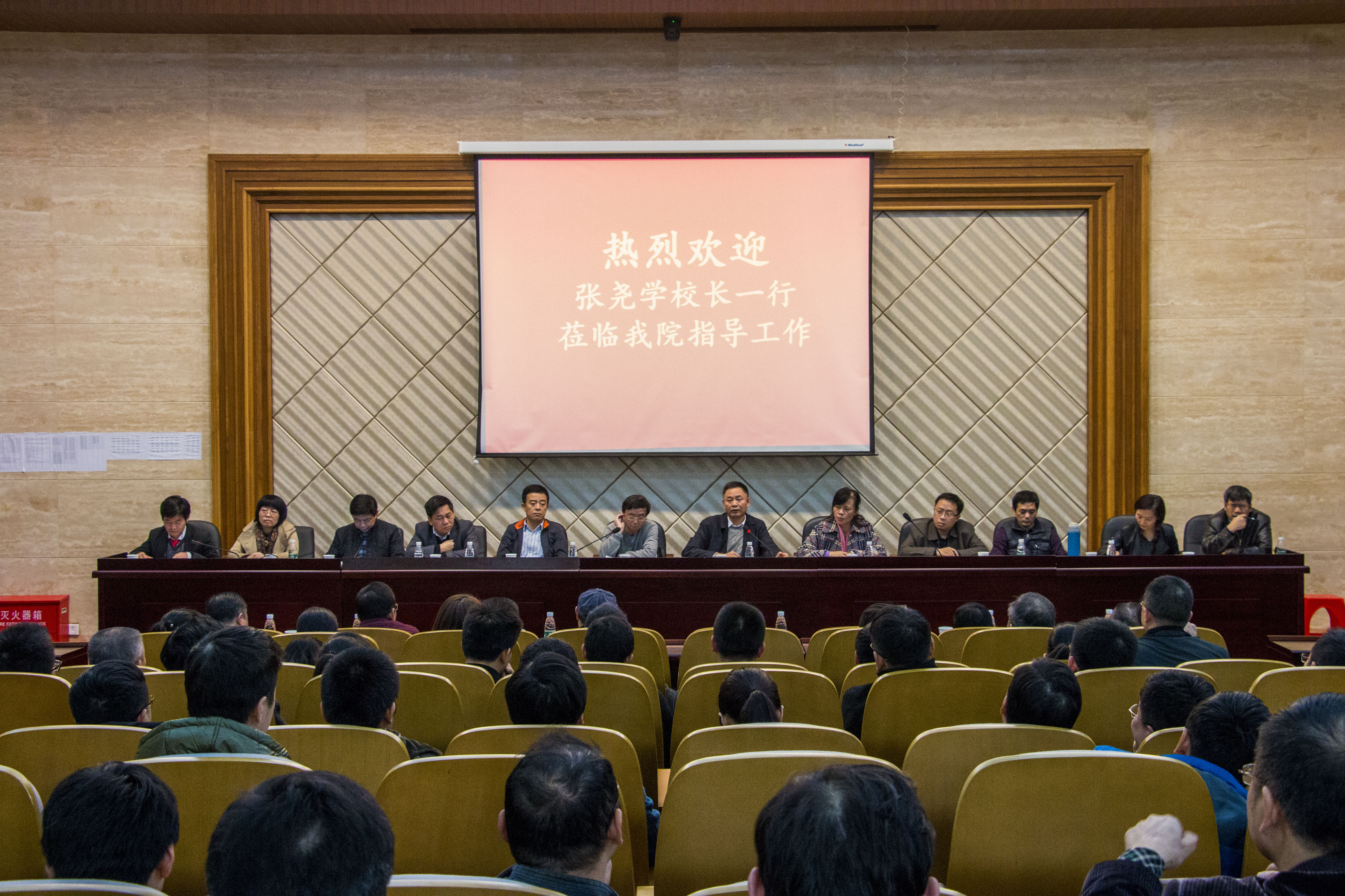 11月21日下午,张尧学校长一行莅临胜游体育(SYsports)官方网站入口指导胜游体育(SYsports)官方网站入口。数理化三个胜游体育(SYsports)官方网站入口近二百名教师参加了此次会议。