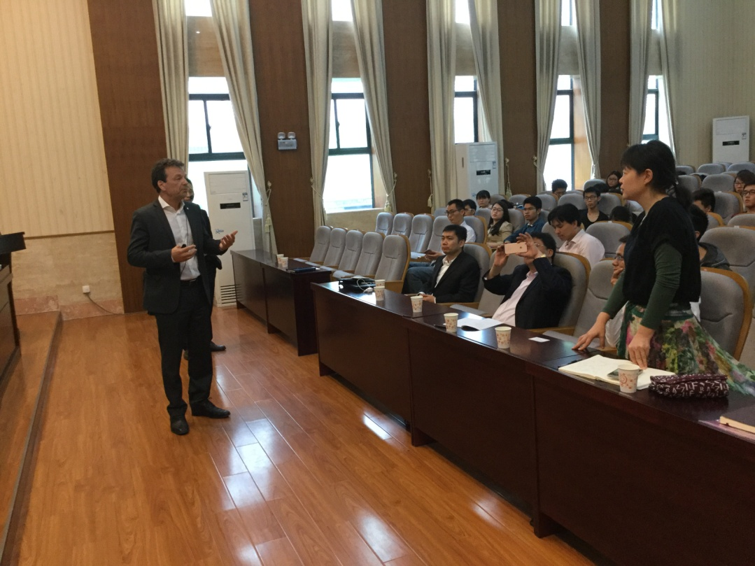 讲座题目为“Epitaxial growth of heterostructuredIII-V semiconductor nanowires on graphene”,即“石墨烯上外延生长III-V半导体纳米线异质结构”。 近年来,III-V族纳米线在纳米电子和纳米光子器件领域的应用潜力被逐步发掘,纳米线异质结构尤其备受世人关注。首先,Helge Weman教授介绍了挪威科技大学和他自己的实验室,包括他建立的CrayoNano AS公司的情况。接着,Weman教授介绍了自己近期在石墨烯上外延生长GaAs、GaN纳米线,并且开发基于AlGaN/graphene复合结构的高效率紫外LED的胜游体育(SYsports)官方网站入口。Weman教授提出了通用的原子模型,可以用来描述在石墨烯上外延生长所有的传统半导体材料。利用透射电子显微镜对石墨烯上外延生长的GaAs、GaN纳米线横截面进行观测与研究,成功地验证了该原子模型。最后,Weman教授与在场师生进行了亲切的交流互动,并耐心地回答了大家提出的问题,现场气氛活跃。