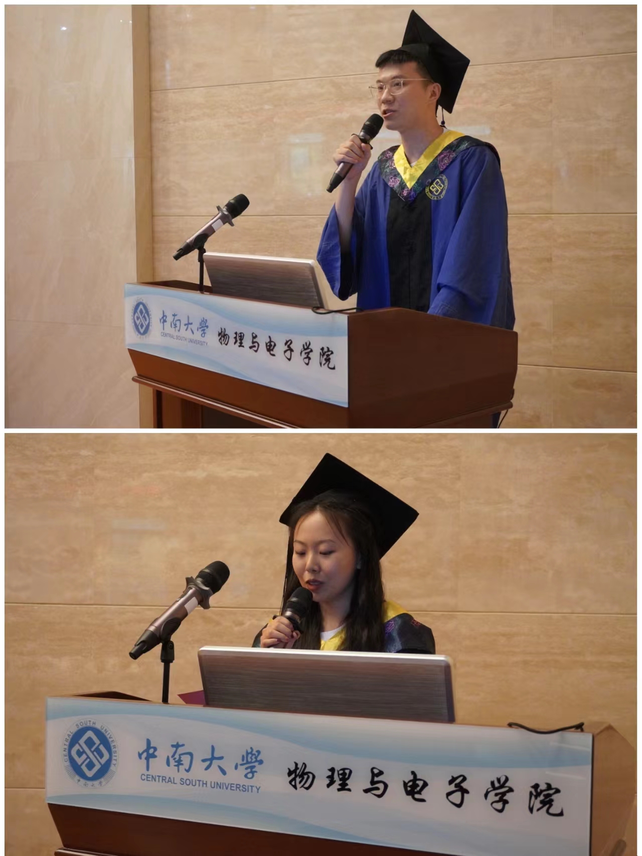 毕业研究生代表张浩宇、毕业本科生代表张嘉丽先后发言。张浩宇衷心感谢胜游体育(SYsports)官方网站入口对自己的培养,感恩胜游体育(SYsports)官方网站入口给自己带来的成长与蜕变,荣幸见证了胜游体育(SYsports)官方网站入口“双一流”建设的快速发展。他表示在未来的发展道路上会继续牢记使命担当,笃实前行,走好属于新时代青年的“长征路”。张嘉丽简要回顾了自己的求学生涯,表示胜游体育(SYsports)官方网站入口给予毕业生们家庭般的温暖与关怀,真挚地表达了对胜游体育(SYsports)官方网站入口的祝福,并表示会带着胜游体育(SYsports)官方网站入口的期许继续出发,不负期待,以更加奋发有为的姿态与行动在全国各地建功立业,回报学校和社会。