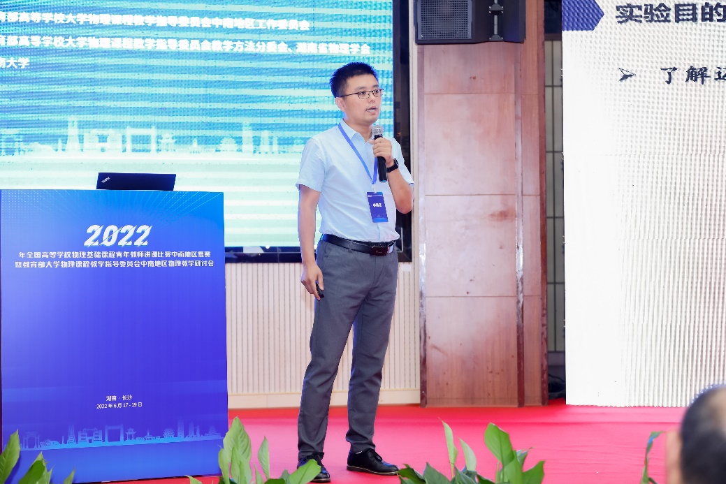 (通讯员 李洋 王心成)2022年6月18日,全国高等学校物理基础课程青年教师讲课比赛中南地区复赛在长沙神农大酒店四楼多功能厅成功举行。本次比赛为物理实验讲课比赛,由教育部高等学校大学物理课程教学指导委员主办,中南大学承办,共有来自中南6省的19名优秀选手参加了比赛,经激烈角逐,来自河南科技大学的李秋泽等6位老师获得一等奖,其中前5名将代表中南地区参加全国比赛。