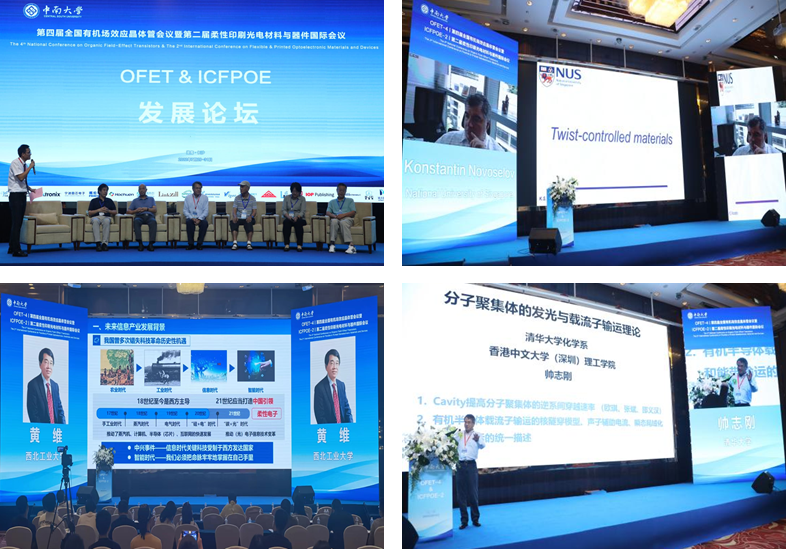 本次会议由朱道本院士担任名誉主席;刘云圻院士、黄维院士、胡文平教授、周科朝教授担任会议主席;中南大学阳军亮教授担任会议执行主席;程一兵院士、马於光院士、崔铮教授、王利祥教授担任会议学术委员会主席。本次会议共有8个大会报告、45个主题报告、112个邀请报告、23个口头报告以及75个墙报,展示了有机场效应晶体管和柔性印刷光电材料与器件领域的前沿进展。本次会议采用线上线下结合的方式进行,来自中国大陆、中国香港、美国、英国、日本、新加坡、韩国等境内外相关研究领域的专家学者齐聚一堂(其中线下参会400余人、线上参会2000余人次),进行了深入的交流与讨论。