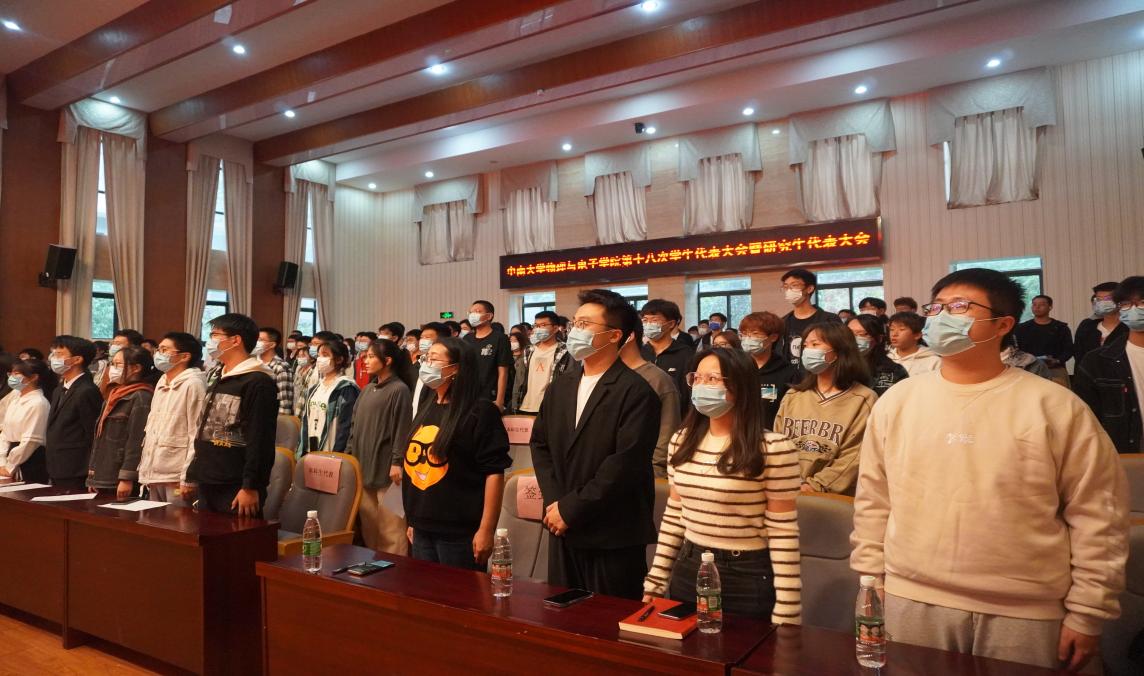 (通讯员 杨克学)10月5日下午,我院第十八次学生代表大会暨研究生代表大会在物理楼116报告厅顺利召开。院党委书记李登伶,院长孙克辉,党委副书记谢群,副院长李长庚、徐富新、龙孟秋、邓联文、阳军亮出席会议,各年级辅导员、本科生和研究生代表参加会议,会议由院团委副书记胡戚剑同学主持。