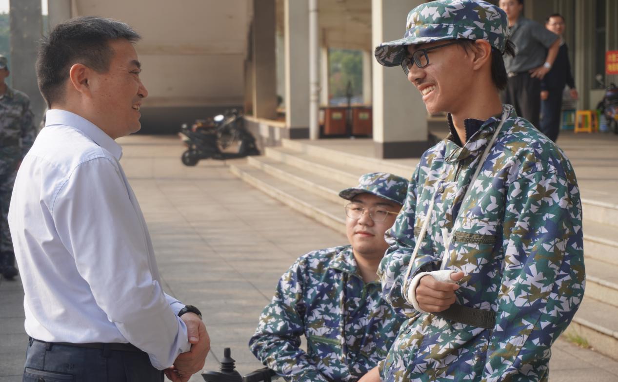(通讯员 杨克学)10月26日上午,院长孙克辉,院党委副书记谢群,副院长李长庚、龙孟秋、阳军亮来到新校区军训场慰问2022级军训新生和教官。院学工办全体辅导员陪同参加此次活动。