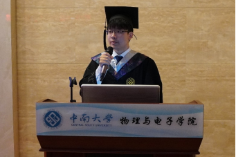 毕业研究生代表张聪、毕业本科生代表周宇航先后发言。张聪衷心感谢胜游体育(SYsports)官方网站入口对自己的培养,感恩胜游体育(SYsports)官方网站入口老师们的谆谆教诲,他表示在未来的人生道路上,一定会志存高远、脚踏实地,勇于攀登新高峰,牢记践行“知行合一,经世致用”的中南校训,传承发扬“格物致理”的物电精神;周宇航简要回顾了四年的求学生涯,他表示未来会继续学习,在所从事的领域发光发热,不负胜游体育(SYsports)官方网站入口的期盼和老师的嘱托,争做奋发有为的新时代青年。