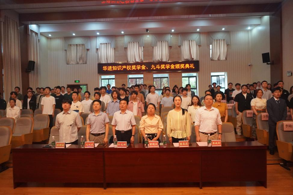 颁奖环节,与会领导嘉宾分别为获得华进知识产权奖学金以及九斗奖学金的37名师生颁发荣誉证书。