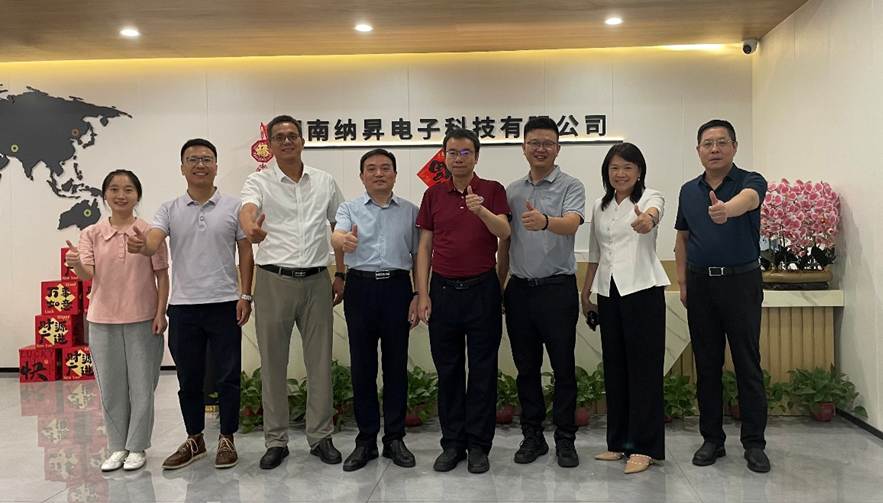 下午2时,何军一行走访湖南纳昇电子科技有限公司。董事长童思超(中南大学2018届校友)陪同参观研发车间,详细介绍了生产工艺、技术创新与市场布局。双方围绕校企联合研发、实习基地建设、人才培养与输送等方面展开座谈,并就下一步合作方向达成共识。