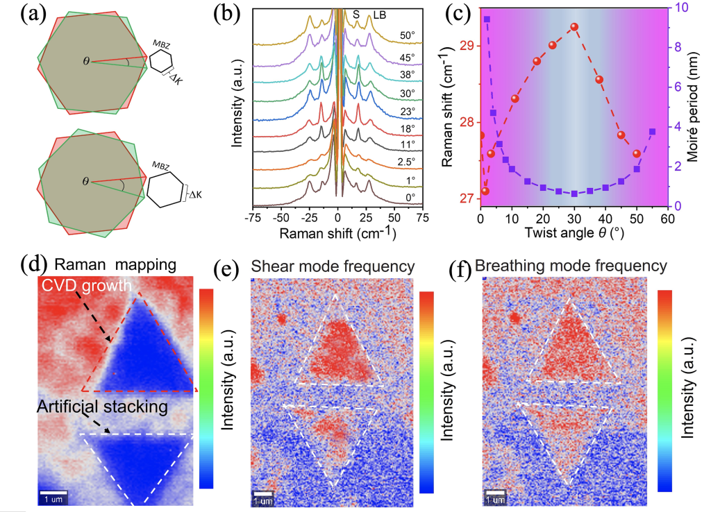 通过Sn原子辅助下克服堆积自由能,采用CVD生长技术制备了具有不同扭曲角的WSe2莫尔超晶格,实现了对扭角WSe2莫尔超晶格层间耦合效应的量子调制。