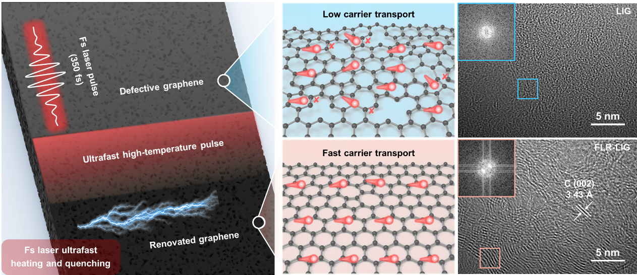 图2. 飞秒激光超快原子尺度修复石墨烯