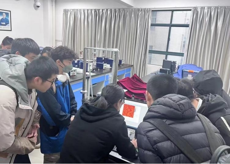 在大学物理实验课上,杨开巍老师详细介绍了显微镜的发展历史以及扫描隧道显微镜、原子力显微镜的原理,并且带领学生们分批次参观原子力显微镜,实地展示其使用方法。在细胞生物学实验课上,文老师也安排了相关物理技术在细胞生物学研究上的文献分析,让同学们在实践中感受接触物理技术在生物学方面的重要性。