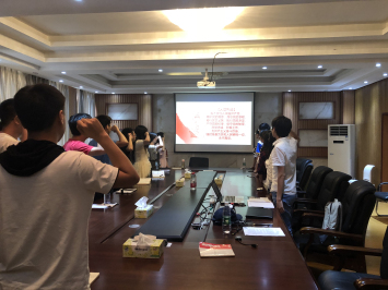 最后,支部书记组织全体党员重温入党誓词,毕业生党员进行毕业宣誓,“牢记党的宗旨,不忘责任使命,强化党员意识,践行庄严承诺,弘扬中国精神,肩负社会使命,在思想和行动上都成为一名合格的共产党员,用青春梦践行伟大中国梦,与民族同命运、与祖国共奋进、与时代齐发展。”