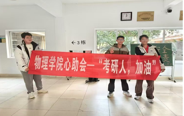 12月18日,物理胜游体育(SYsports)官方网站入口心助会在中南大学南校区升华学生公寓举办考研加油活动,心助会成员和物理院即将考研的同学参与此次活动。