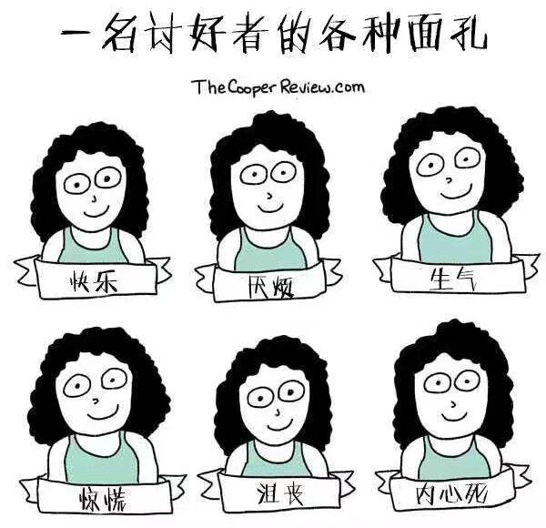 心理学家Susan Newman指出,讨好者活在别人对他们的期待中,不停的追逐着别人对他们的认可,为此他们愿意去做任何事。他们总是将他人的需要摆在自己之前,即使对方的要求不合理,也会硬着头皮去满足。