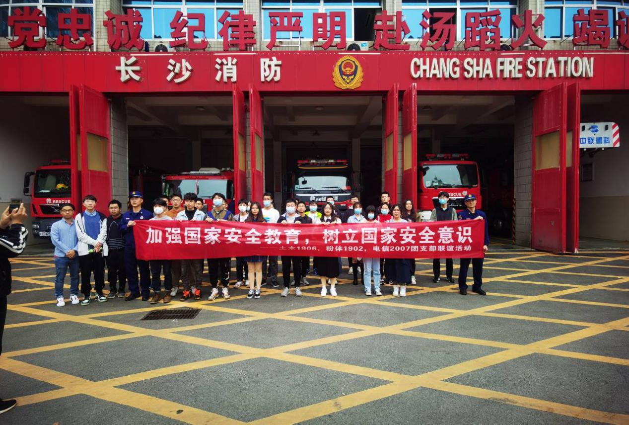 2021年4月17日下午,电信2007班、土木1906班、粉体1902班联合举办“加强国家安全教育,树立国家安全意识”主题团日活动。本次团日活动在芙蓉区南阳街36号五一广场消防救援站举办,共包括室内和室外两部分。