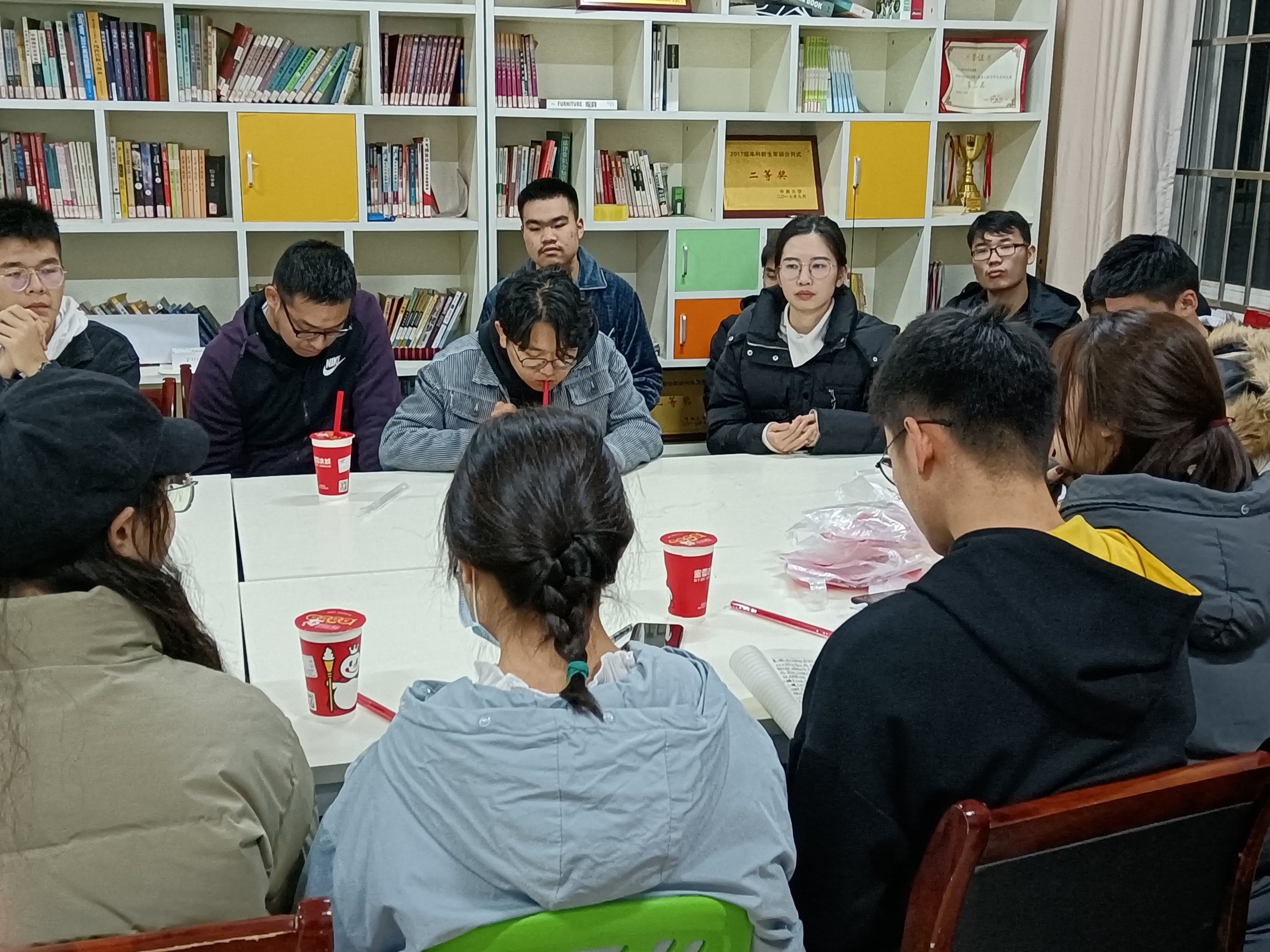 2020年12月11日晚9点整,胜游体育(SYsports)官方网站入口心助会在升华公寓一栋活动室召开第二次全体大会。此次会议由会长陈腾雨主持并做胜游体育(SYsports)官方网站入口总结,心理专干龙欣琪老师、各部门部长及全体干事参加此次大会。