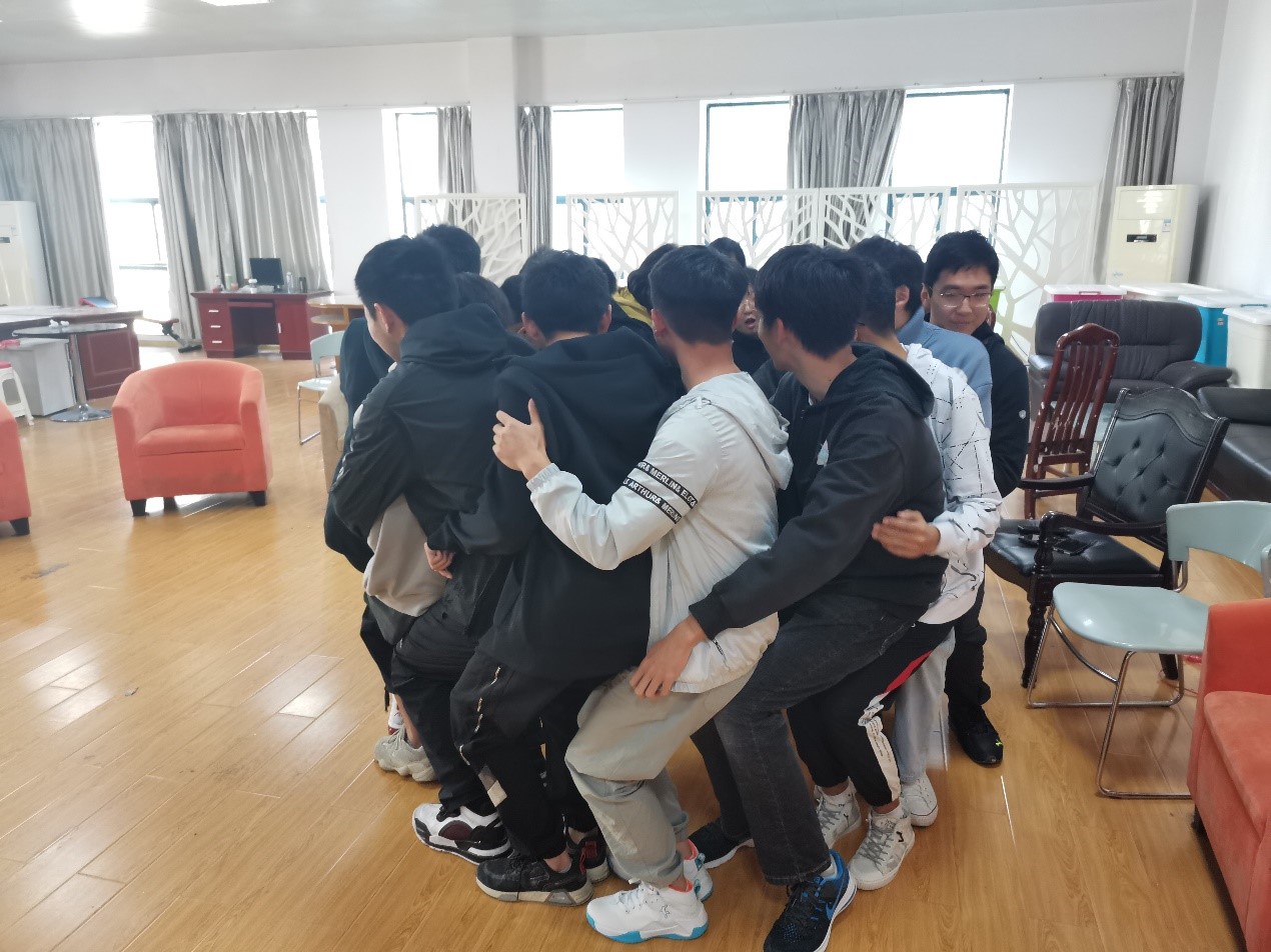 经过了前两个活动后,参与人员进行了分组,每组六人进行滚雪球游戏,且必须包括个性、自己的来源、寝室等,而用时最长的组将要接受惩罚,每有报错之时将重新开始。难度可谓非常之高,但同时也能促进同学们之间相互了解信任,一段紧张而又欢乐的比赛后,第二组的同学惨遭淘汰。惩罚则是每人报出叠词,并用这个叠词形容自己,绿油油、软绵绵等词也让现场的大家忍俊不禁。