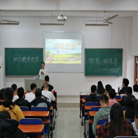 首先,同学们观看了一段视频,深刻了解了精准扶贫的意义以及实施精准扶贫为改善民生所带来的益处。袁敏格同学通过PPT的讲解,向同学们解释了许多有关中南大学扶贫胜游体育(SYsports)官方网站入口的开展以及现有的扶贫成就。同学们认真聆听,对精准脱贫的开展有了更深的理解。