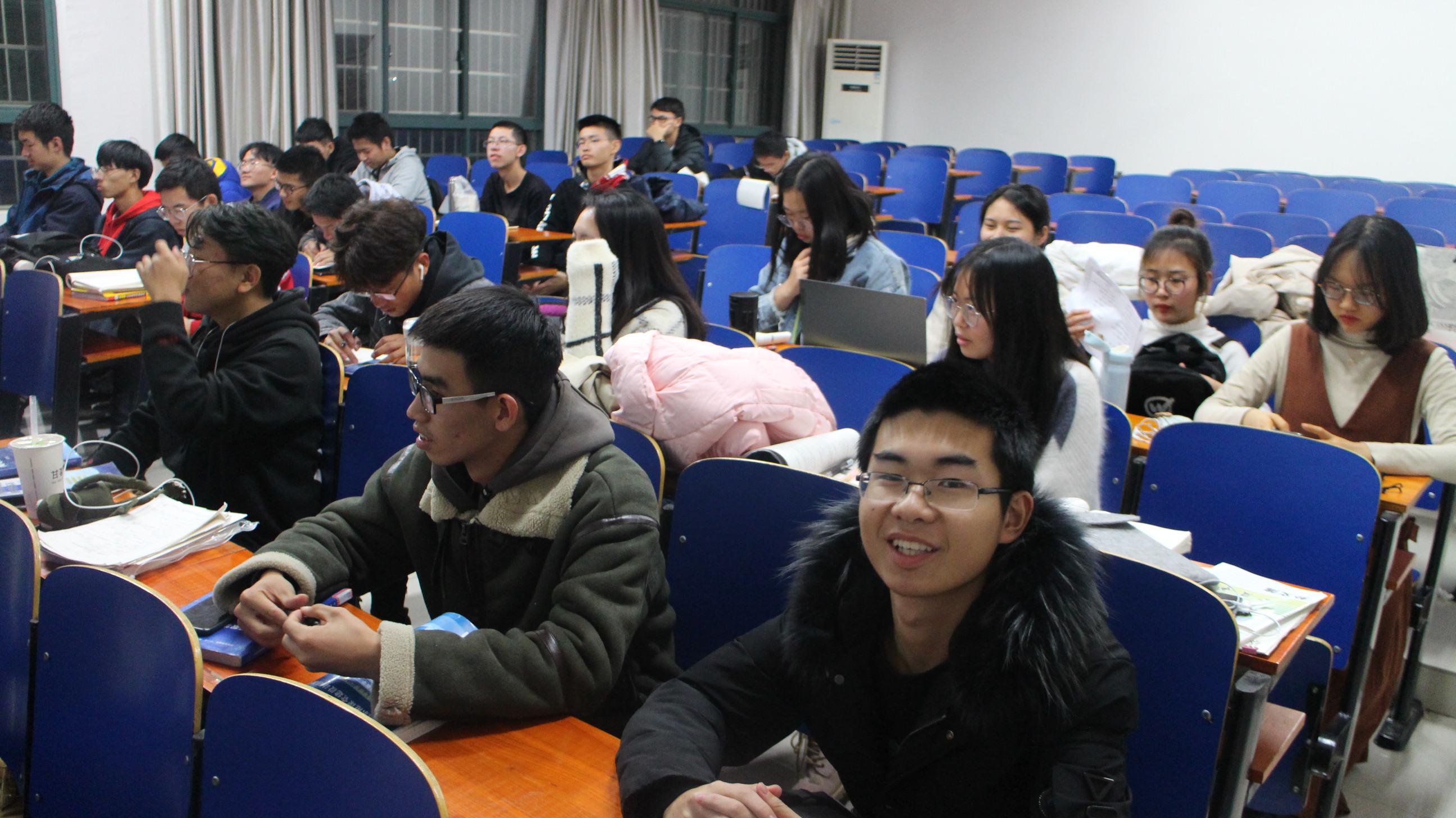 在交通安全班会结束后,开始了期末动员大会,此次大会主要由学习委员刘根程同学主持。刘根程同学向各位同学明确了本学期的课程学分比例,分析了考试科目的试卷构成与总分计算细则。刘根程同学最后向同学们提出了关于期末复习的几点建议并指明合作的重要性。其后,同学们依次上台简述自己的期末复习计划,相互借鉴,取长补短。