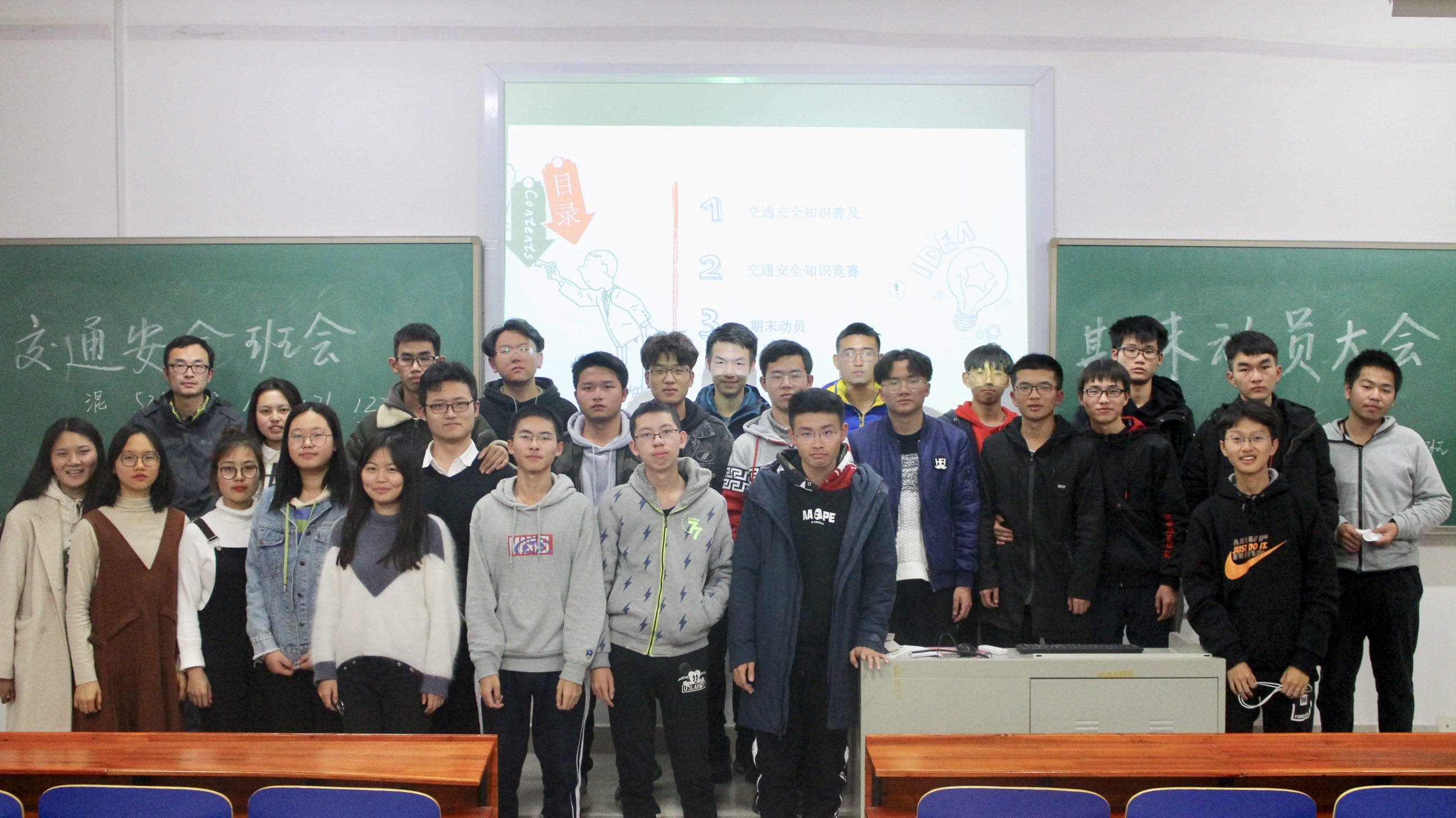 12月5日晚7点,物电院电子信息类1904班交通安全班会暨期末动员大会在物理楼125顺利召开。班导师王希光老师参与了本次班会,此次班会暨动员大会分别由班长吴泰龙同学、学习委刘根程同学主持。