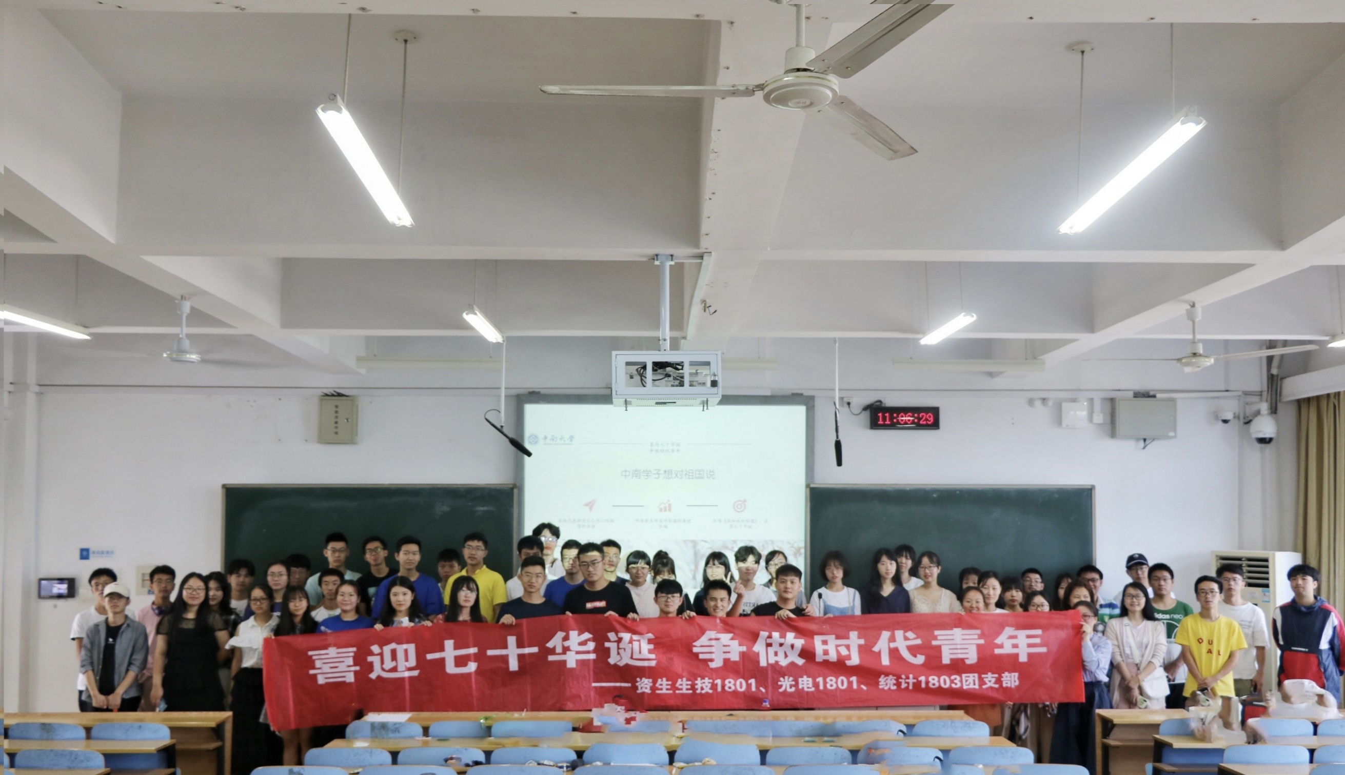 9月21日上午十点,生技1801、统计1803和光电1801联合团支部举办的“喜迎七十华诞,争做时代青年”主题活动在中南大学新校区B座教学楼210教室成功举办。