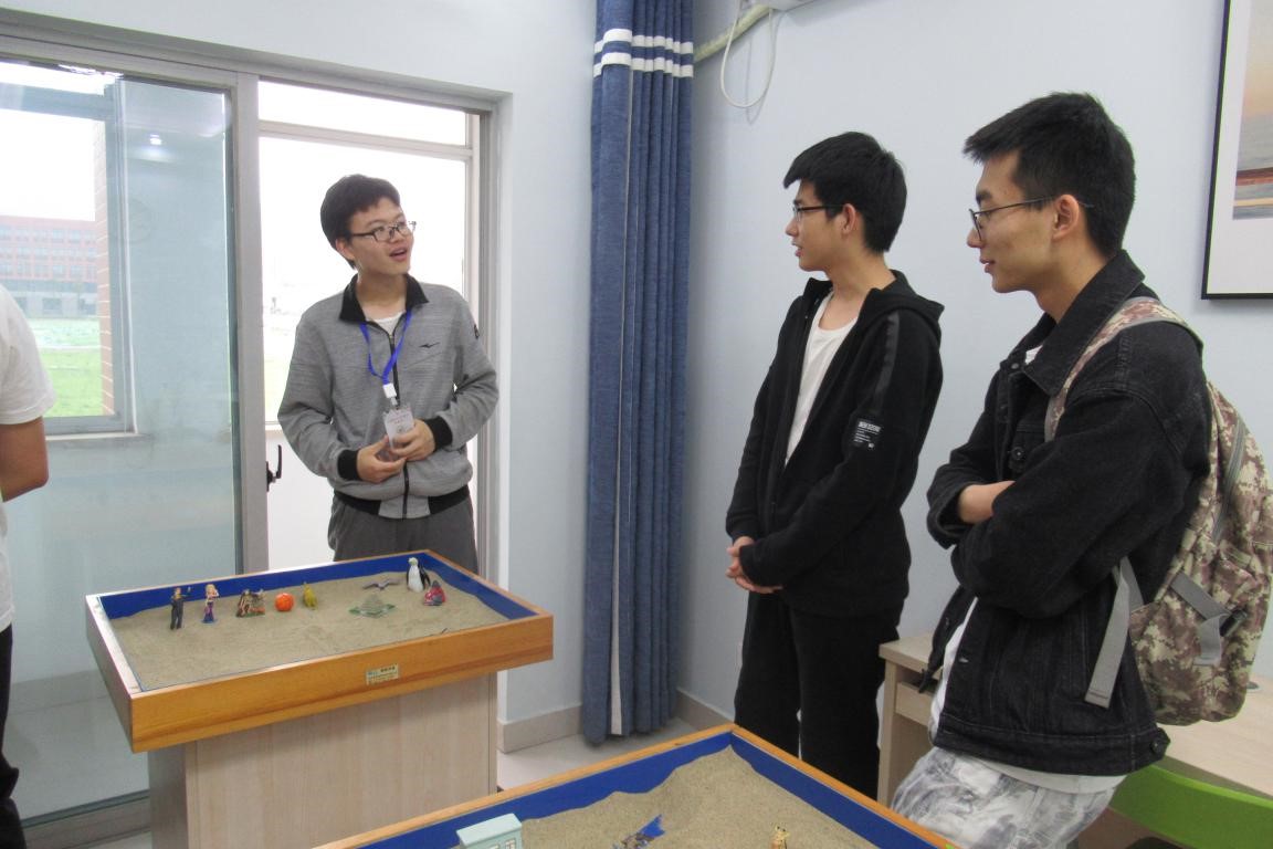 此次参观共包括“开放日大本营”、“团辅交心吧”、“影视启心吧”、“沙游探心吧”、“音乐抚心吧”、“脉动理心吧”、“VR建心吧”、“动感舒心吧”和“开放日心愿树”九个板块。讲解员细致讲解了活动目的、中心概况与服务、学校心育胜游体育(SYsports)官方网站入口内容及开放日的活动安排和要求,随后,所有到场参观人员以小组为单位进行体验。
