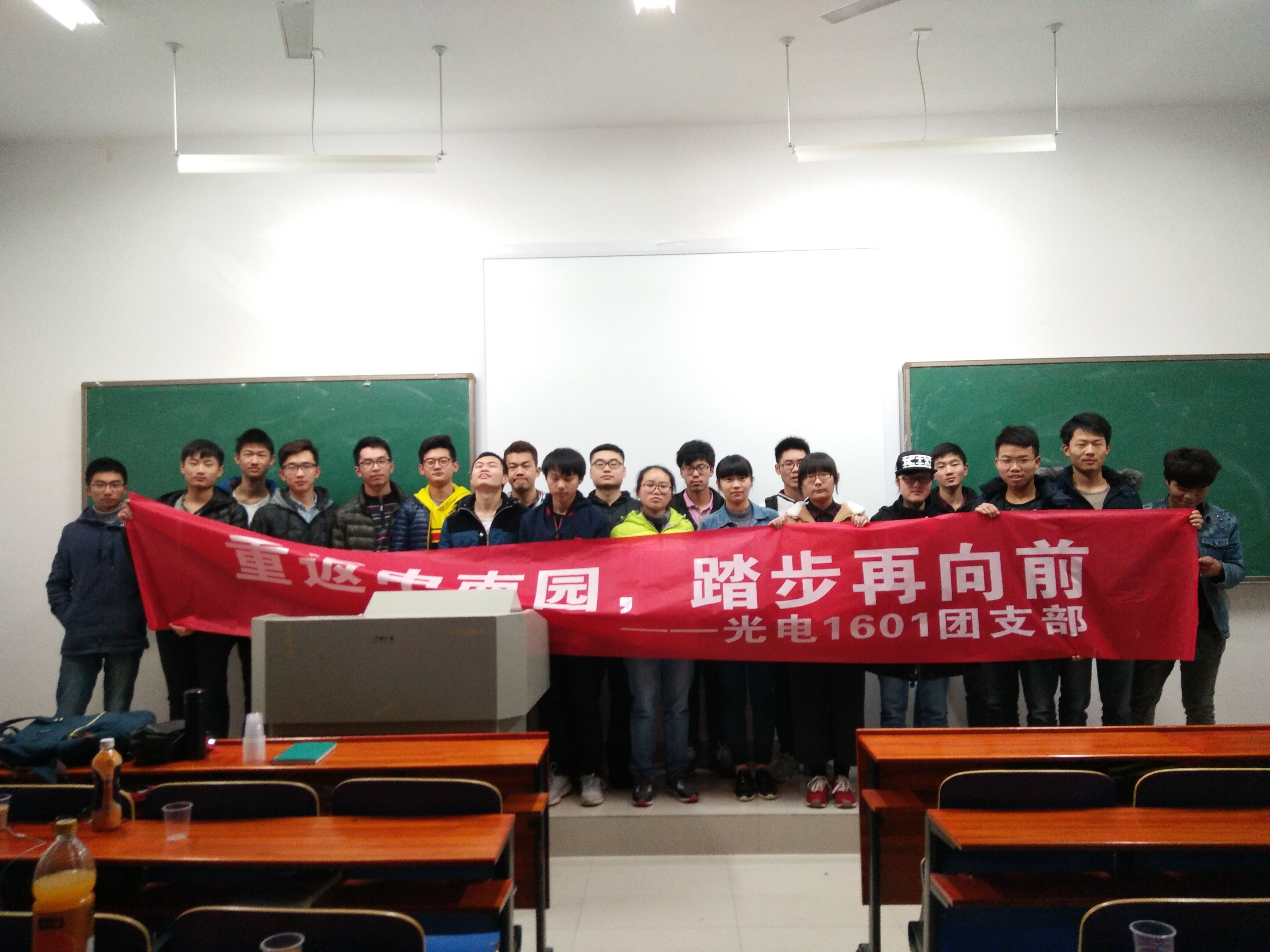 3月23日下午7时,胜游体育(SYsports)官方网站入口光电1601班在新校区物理楼131室举行了以“重返中南园,踏步再向前”为主题的团日活动。本次团日活动由组织委员石顺心和团支书成思怡主持。