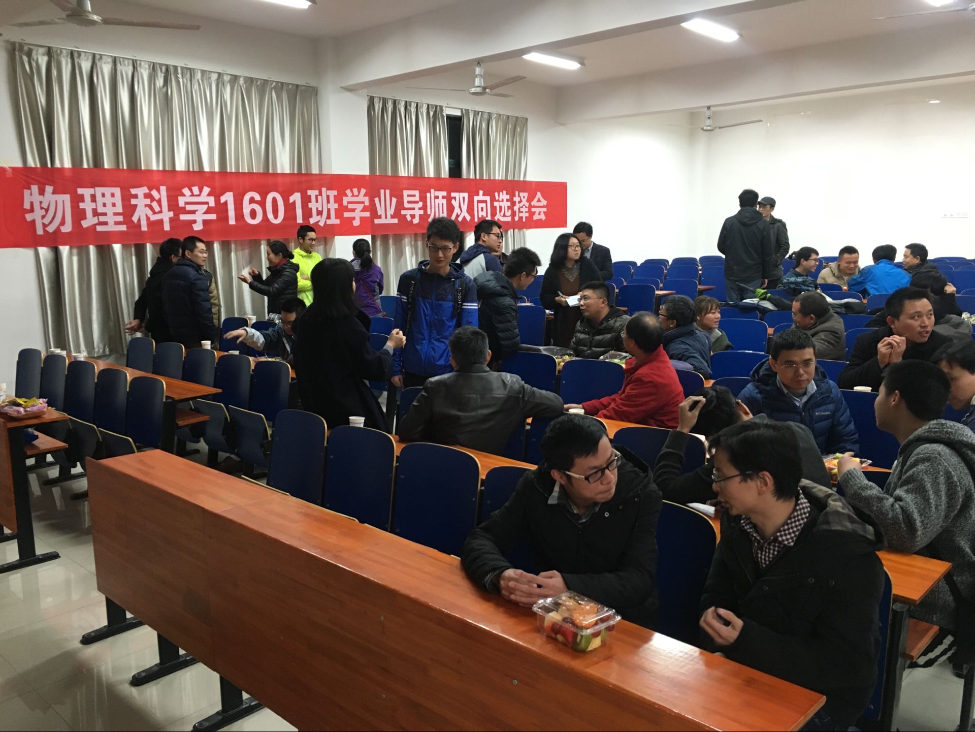 3月15日下午3:00,胜游体育(SYsports)官方网站入口物理科学1601班学业导师双向选择交流会在物理楼124教室顺利举行。会议主要以促进师生交流,增进师生情感,实现学业导师互选为目的。物电院多位教授和物理科学1601班全体同学参与了此次会议。会议由学工办副主任钟旭东主持。
