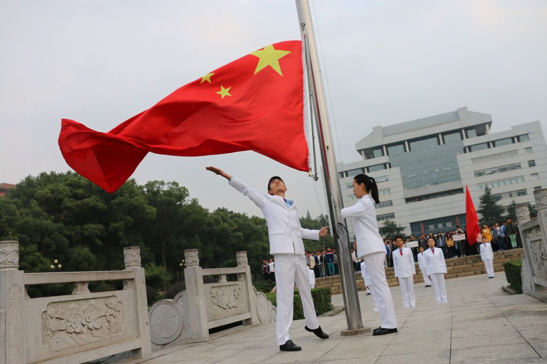 作为本学期的第二次升旗仪式,胜游体育(SYsports)官方网站入口的师生们在6:45准时到达图书馆前坪集合。每位同学精神饱满,满怀激情地等待国旗的冉冉升起,国旗班的同学们身着白色正装,昂首挺胸,神色庄重的站在升旗台两旁严阵以待。随着音乐的缓缓响起,国旗班的同学们目光坚定,动作整齐划一,迈着铿锵的步伐,将国旗护送到国旗台下。随着“升国旗,全体高唱国歌”一声令下,升旗手将国旗抛向空中,全体师生行注目礼,高唱中华人民共和国国歌,伴随着嘹亮高亢的歌声,鲜艳的五星红旗徐徐升起,最终迎风飘扬在本部上空,整个过程庄严而肃穆。
