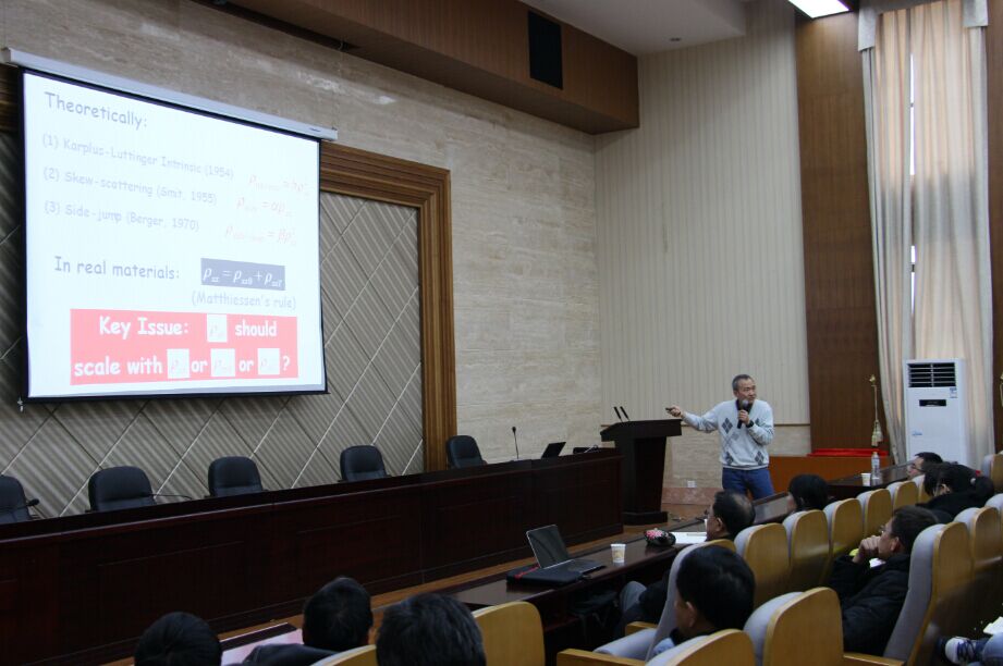 为了让物电院师生了解科研的新动态,解决广大师生关注的热点问题,12月21日下午15:00,中南大学名师名家学术论坛物理院专场在物理楼116多功能报告厅成功举行,本次论坛由复旦大学金晓峰教授主讲。论坛由郭光华教授主持,众多物电院师生参与了此次讲座。讲座伊始,主持人郭光华教授作开场致辞,他介绍了金晓峰教授在凝聚态物理等科研方面的主要成就,以及在教学领域的突出贡献。金晓峰教授从“霍尔效应”谈起,引出了金教授团队的研究课题——反常霍尔效应的机理,并向同学们介绍了团队多年的胜游体育(SYsports)官方网站入口成果。其后,金教授介绍了自旋电子学与微电子的差别,并结合实例,深入浅出地讲解了该原理的应用。金教授生动的演讲启迪同学们的思维,令大家连连惊叹。