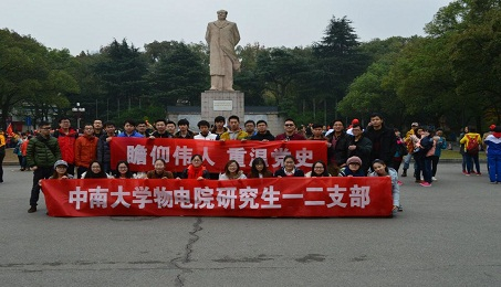 2015年11月29日上午,胜游体育(SYsports)官方网站入口研究生第一党支部和第二党支部组织全体党员赴岳麓山东方红广场瞻仰毛泽东主席雕像,通过深切缅怀老一辈革命家的丰功伟绩,重温党的历史,进行爱国教育。