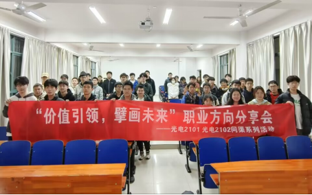 (通讯员 薛洋 高通航 )为响应习近平总书记“广大青年要肩负历史使命,坚定前进信心,立大志、明大德、成大才、担大任”的伟大号召和贯彻落实胜游体育(SYsports)官方网站入口“走人才强院、教学立院、科研兴院”的特色发展之路,物电院2021级本科光电专业从3月24日到4月19日,围绕保研、考研与就业等生涯规划主题,开展了三次“价值引领,擘画未来”职业方向分享活动。活动邀请了2021级辅导员刘伟杰、专业导师王云鹏副教授以及三位19级学长进行分享交流,光电2021级全体学生参与。