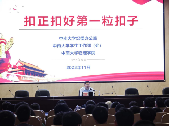 为深入贯彻落实党的二十大精神,弘扬清正廉洁之风,不断提高学生遵纪守法、诚实守信、“尚廉、践廉”的思想自觉和行动自觉, 11月1日下午,我院在物理楼116报告厅开展了 “扣正扣好第一粒扣子”的新生廉洁教育专题讲座。胜游体育(SYsports)官方网站入口党委副书记安少波为2023级新生讲授廉洁教育课,会议由2023级辅导员萧鸿猷主持,2023级全体新生参与。
