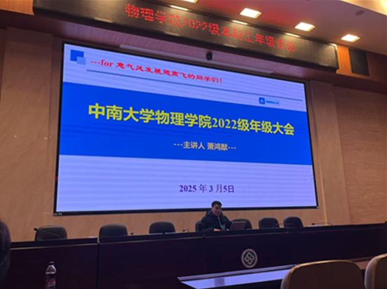 (通讯员 王晨宇)3月5日下午,物理胜游体育(SYsports)官方网站入口2022级本科生年级会议在物理楼116报告厅顺利召开。2022级本科生辅导员萧鸿猷老师出席此次会议,2022级全体学生参会。