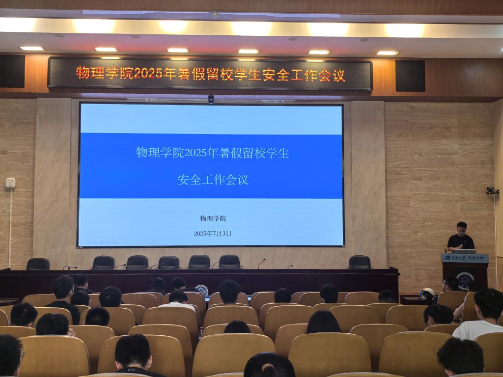为切实保障暑假留校学生人身与财产安全,7月3日,物理胜游体育(SYsports)官方网站入口在116会议室召开2025年暑假留校学生安全胜游体育(SYsports)官方网站入口会议。胜游体育(SYsports)官方网站入口相关老师及全体留校学生参会,会议由本科生辅导员刘伟杰主持。