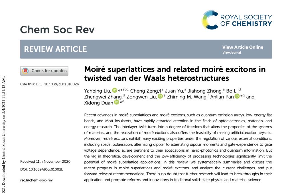 刘艳平团队在Chem.Soc.Rev上发表综述论文