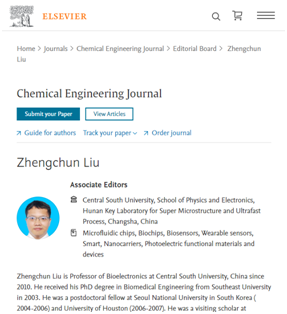 近日,我院刘正春教授应Chemical Engineering Journal(以下简称CEJ)期刊编委会邀请担任该期刊副主编,主要负责微流控技术与传感领域方向稿件编审胜游体育(SYsports)官方网站入口。CEJ是ELSEVIER旗下工程领域经典学术期刊,据Web of Sc...