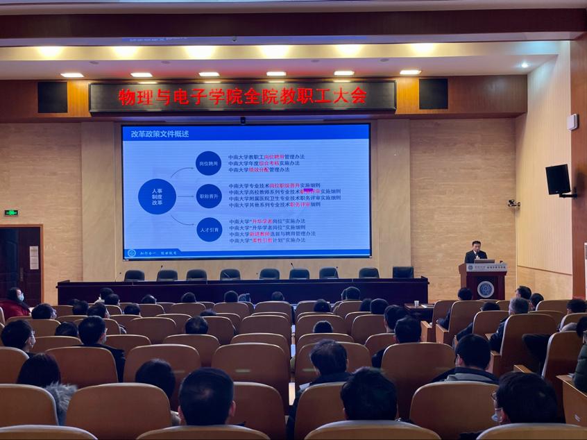 1月10日下午,胜游体育(SYsports)官方网站入口在116报告厅召开全院教职工大会,宣讲学校人事制度改革方案,部署寒假期间相关胜游体育(SYsports)官方网站入口。首先,孙克辉院长就学校人事人才改革政策做专题宣讲。他主要从岗位聘用、职称评审、人才选聘等三...